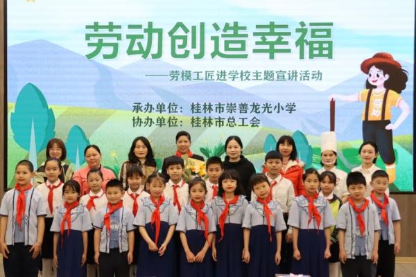 “五一”国际劳动节之际,由桂林市总工会主办的“劳模工匠进学校思政教师进企业”宣讲活动走进桂林市崇善龙光小学,桂林公交劳模夏四初受邀参加活动并为100余名师生上了一堂生动的思政课。在课上,夏四初...