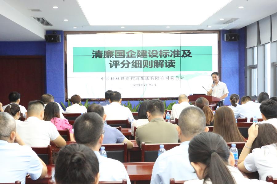 此次培训重点围绕《投资集团党委会议事规则》进行了解读,从“议什么?”“谁来议?”“议题怎么来?”“怎么议?”“议完怎么落实?”等方面进行全面解析,帮助各成员单位及集团总部部室人员系统了解了集团党委会的议事规则。会议还传达、解读了《“一把手”和领导班子监督工作方案》《桂林投资控股集团有限公司贯彻落实习近平总书记重要指示批示和党中央重大决策部署跟进督办制度》,《清廉国企建设标准及评分细则》等内容。