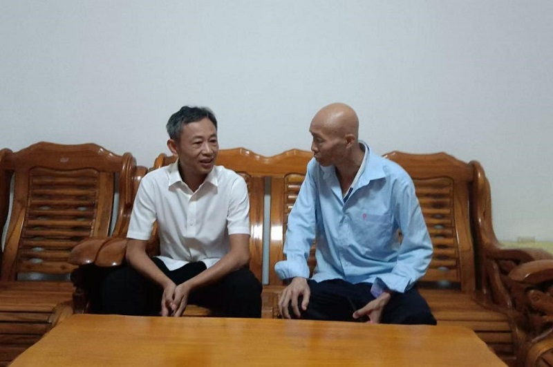 ▲吕小洁慰问党员唐杰。黄楚琪/摄