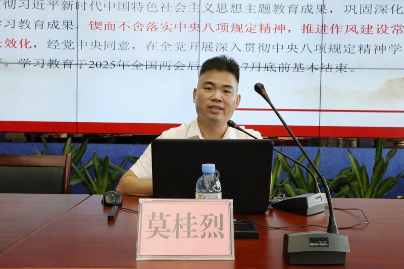 为加深与会人员对中央八项规定精神的理解和认识,集团公司邀请了中共桂林市委党校副校长莫桂烈教授进行了专题党课辅导。莫桂烈教授从深入贯彻中央八项规定精神的重大意义、准确把握其主要内容、全面落实具体要求等三个方面进行了深入讲解,与会的全体党员干部在听完专题辅导后,纷纷表示在今后的工作生活中,要以实际行动持续推动集团公司学习教育走深走实,抵制“四风”,积极为集团公司营造清正廉洁的政治生态贡献力量。