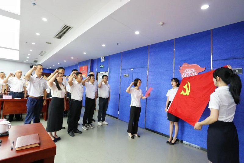 集团公司领导为获奖代表颁发荣誉证书和奖牌,在庄严的氛围中,新党员进行入党宣誓,全体老党员一同重温入党誓词。他们紧握右拳,面对鲜艳的党旗,以坚定的声音许下对党和人民的庄严承诺。滚烫的誓词提醒着每一位党员不忘初心、牢记使命,为党和人民的事业奋斗终身。