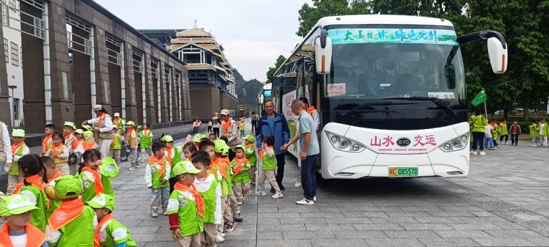 “请各位同学系好安全带,我们准备出发了!”10月23日,阳朔山水公司旅运公司7辆48座新能源大巴车载着300余名师生,从平乐实验中学出发前往阳朔如意峰开启研学之旅。