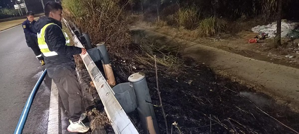 近日,机场路公司道路养护员在夜间路况巡查时,遇到路边绿化坡道出现火情,在关键时刻他们挺身而出第一时间控制火势,用实际行动诠释了公路人的责任与担当。