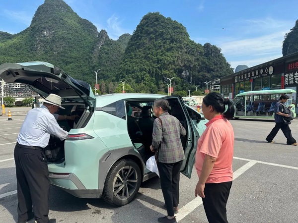 6月3日下午,阳朔十里画廊景区上演暖心一幕:两名年近八旬的游客因迷路陷入困境,阳朔山水交通投资运营有限公司接驳车驾驶员曾秀姣主动伸出援手,通过灵活调度与全程守护,最终让老人平安踏上归途。