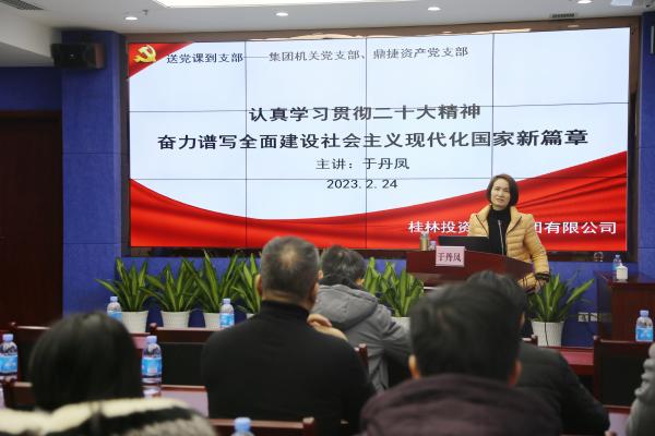 2月24日,集团公司党委委员、监事会主席、市国资委党的二十大精神宣讲团成员于丹凤在集团公司总部开展党的二十大精神专题党课宣讲,集团机关党支部、鼎捷资产集团党支部党员、入党积极分子参加此次宣讲会议。