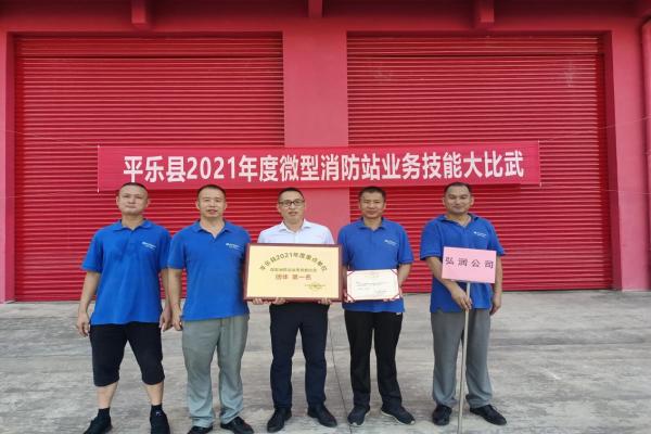 9月8日,弘润公司参加由平乐县消防安全委员会举办的平乐县2021年微型消防站业务技能大比武,此次共有10支重点单位微型消防站代表队参赛,弘润公司分别获得理论第一名、一人两盘第一名、原地着战斗服第一名、团体总分第一名。