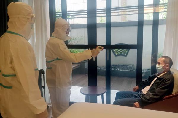 演练以酒店入住宾客出现“红码”异常情况为背景开展,共预设发现“红码”人员、启动应急机制、隔离观察、逐级报告、闭环转运、场所消毒等多个环节。演练中,平乐温德姆酒店按照应急演练方案和人员分工逐项完成演练程序,通过演练进一步完善了防控细节,达到了预期目的和效果,为全县疫情防控应急处置起到了较好的示范作用。