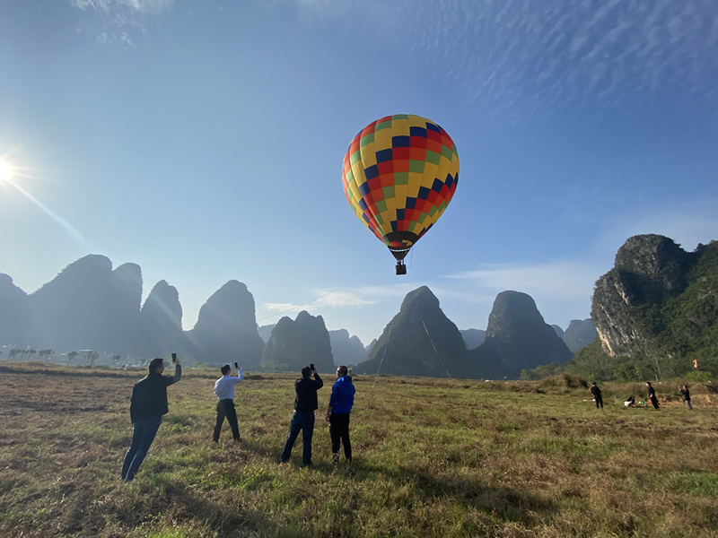 在贺州钟山百里水墨画廊,鼎捷资产集团考察团前往亚航科技工厂,深入了解了亚航科技热气球的研发过程、运营模式,并实地观摩、体验了热气球项目。