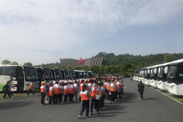 习近平总书记视察桂林一周年之际,近日全州迎来了红色研学实践活动新高潮。为配合广大中小学校、企事业单位参观红色教育基地,桂林交控轨道集团灵渠投资公司全力调派绿色新能源大巴参加运送工作,仅5月17日就派出50辆新能源大巴、满载2200名师生到全州红军长征湘江战役纪念园参观学习,“红色研学实践+绿色出行”模式助燃桂林红色旅游强劲复苏。