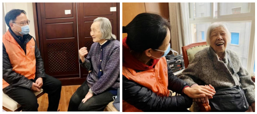 “张奶奶您好,我是义工小李,今天来陪您聊聊天好吗?”“唐爷爷,我们之前有见过面的,您还记得我吗?”……伴随着一句句温暖的话语,志愿者们打开了活力花园养老公寓老人的话匣子,通过聊子女、聊生活、聊爱好,一些平时寡言少语的爷爷奶奶脸上出现了光彩,展露出了爽朗的笑容。