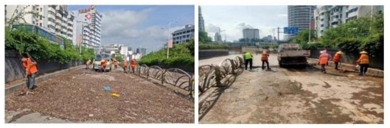 经过几天的奋战,积水消退,城市的道路满目疮痍,留下的是厚厚的淤泥、垃圾和损坏的路面。但他们毫不退缩,又第一时间奔赴现场。他们挥舞着铁锹,铲除淤泥;他们用坚实的肩膀扛起一袋袋沉重的垃圾;他们操作着设备,修复破损的路面。