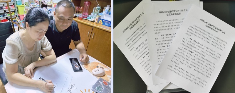 “双节”前夕,阳朔山水公司组织全体职工及家属签订《家庭助廉承诺书》,将廉政教育延伸到职工“八小时外”和家庭中,进一步强化了党员领导干部廉洁意识,鼓励党员干部配偶当好“廉内助”。此次签订活动共向职工家属发放承诺书300余份,营造出“企业+家庭”良好廉洁环境,筑牢家庭廉洁防线。
